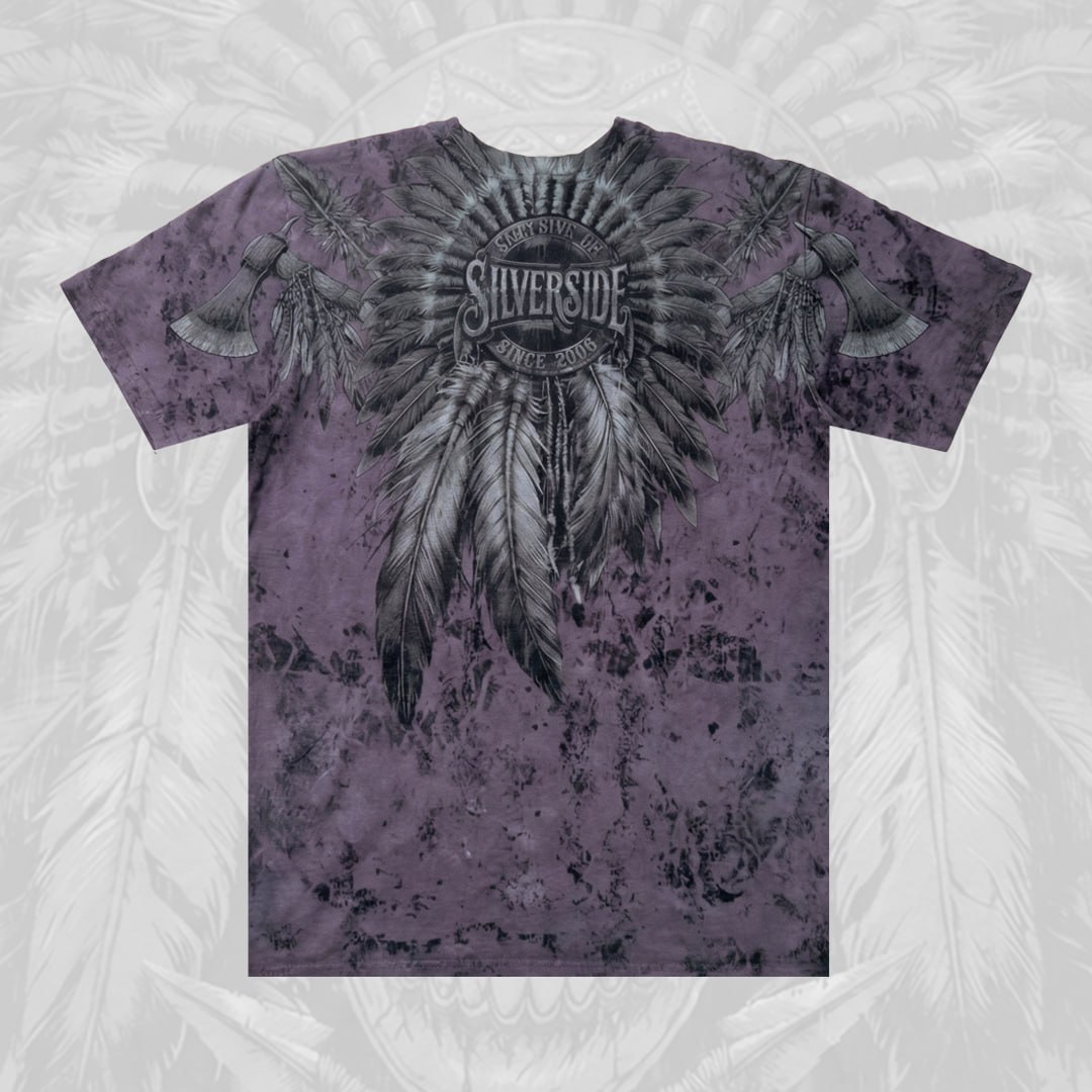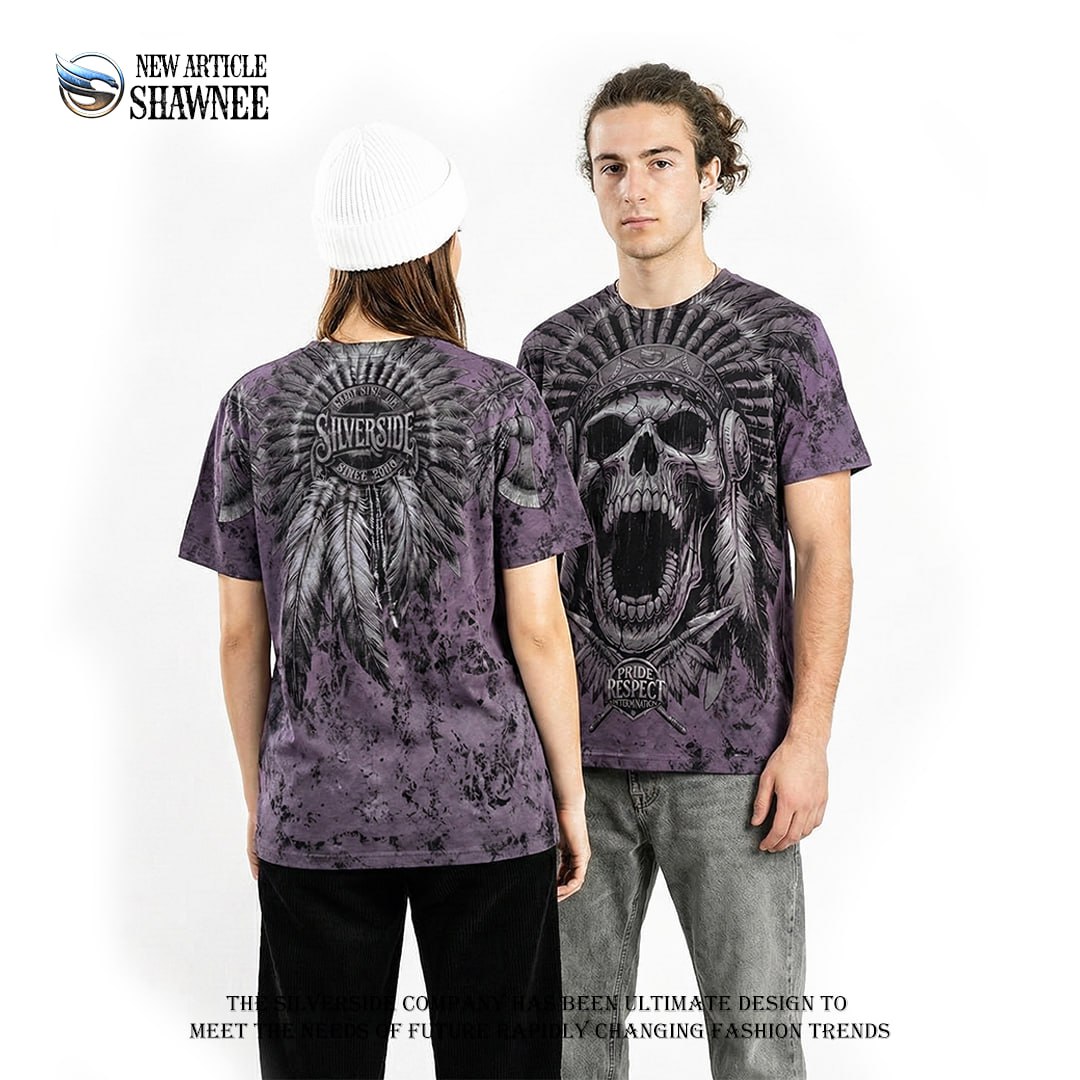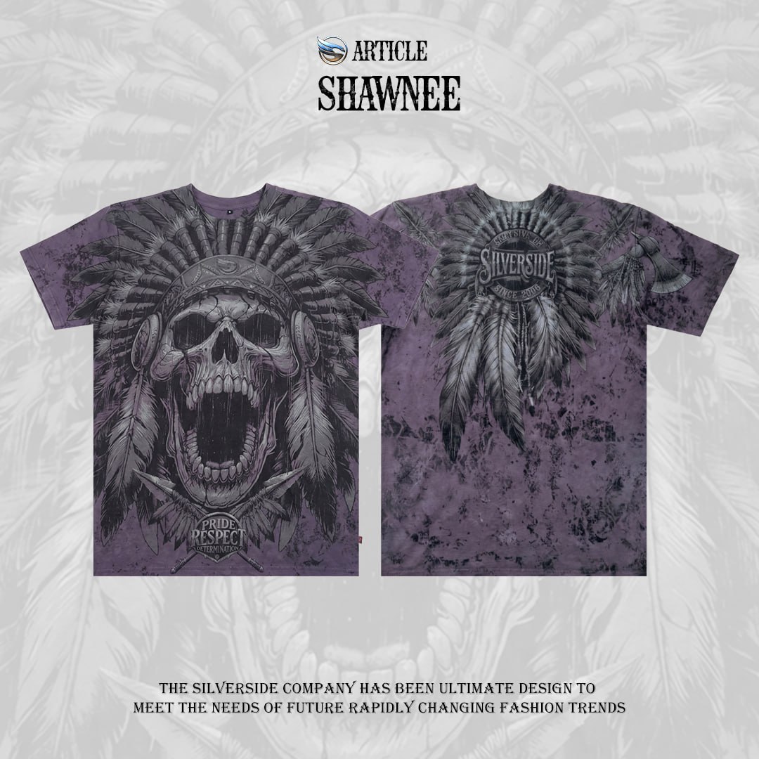 Shawnee T shirt Silverside menggunakan full artwork dengan detail tegas, sedangkan bagian belakang terdapat logo signature Silverside yang ikonik. Look-nya premium, berkarakter, dan beda dari kaos distro biasa. Design bold dengan detail tajam dan karakter kuat – cocok untuk kamu yang suka tampilan maskulin & statement look.