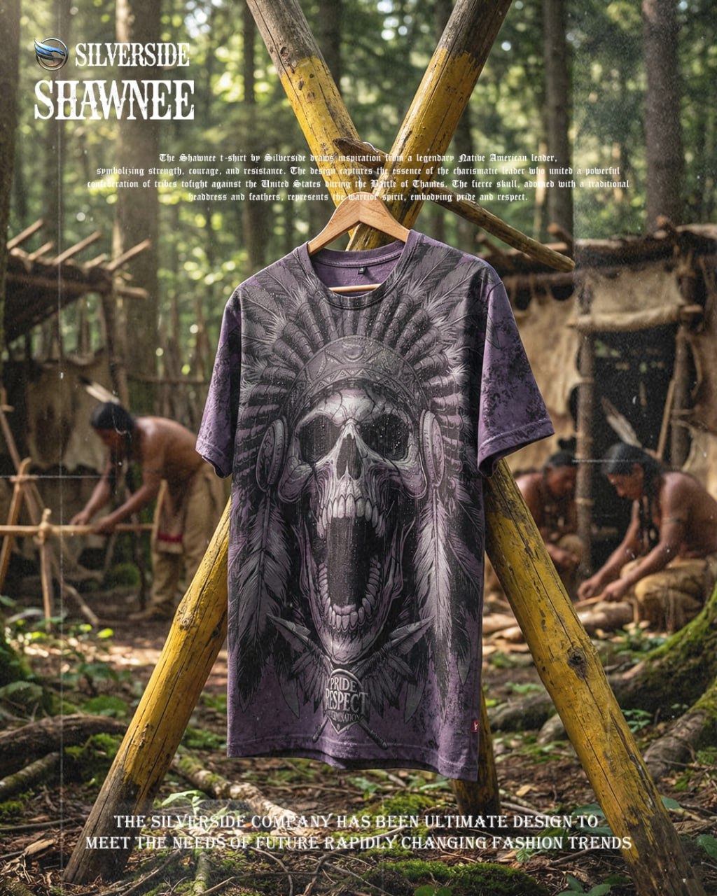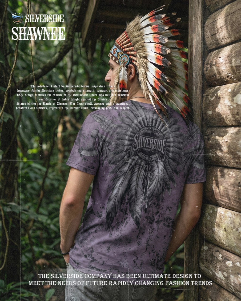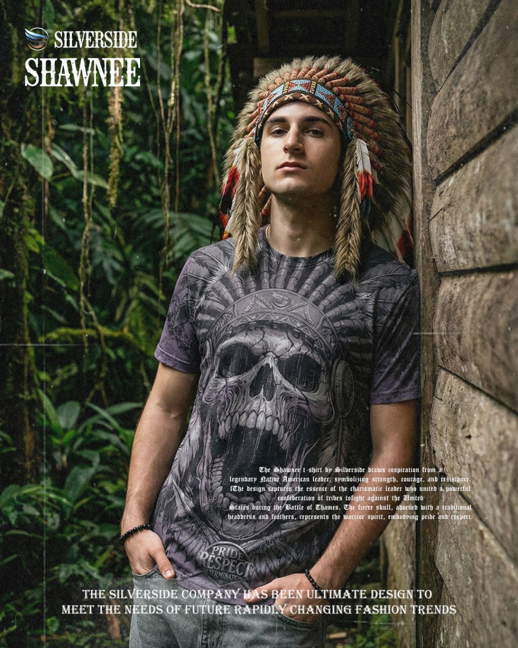 Shawnee T shirt Silverside menggunakan full artwork dengan detail tegas, sedangkan bagian belakang terdapat logo signature Silverside yang ikonik. Look-nya premium, berkarakter, dan beda dari kaos distro biasa. Design bold dengan detail tajam dan karakter kuat – cocok untuk kamu yang suka tampilan maskulin & statement look.