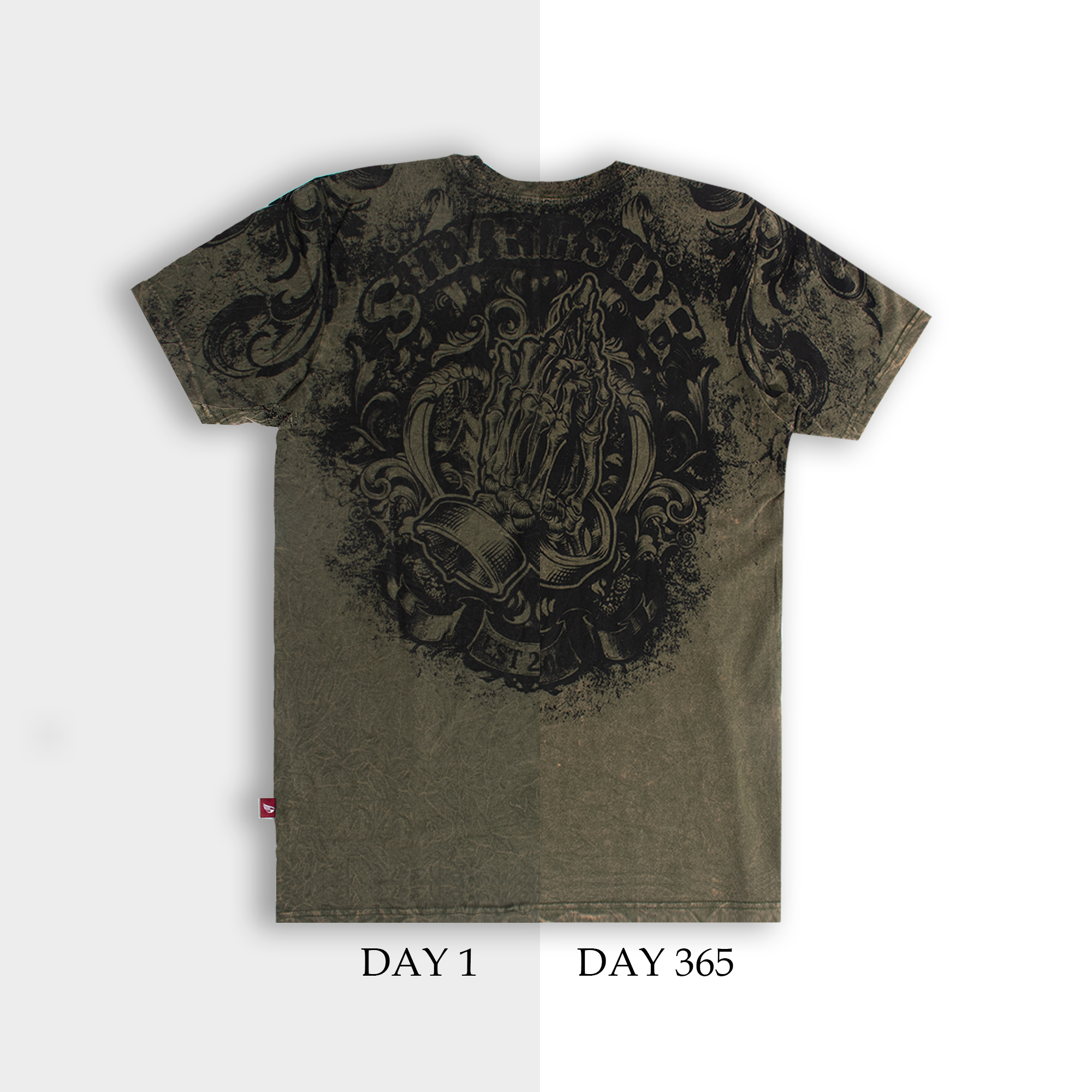 Kenalkan NEW ACID dari SILVERSIDE, t-shirt washing premium yang menghadirkan desain tshirt custom unik dengan gambar tangan tengkorak lagi berdoa pada kaos berwarna hijau army yang stylish dan penuh makna. Diciptakan dengan teknologi washing terkini dan bahan berkualitas tinggi, NEW ACID menawarkan efek washed look otentik yang menggabungkan nuansa vintage dan modern, serta memberikan kenyamanan optimal untuk gaya hidup urban Anda. Desain inovatif ini menyampaikan pesan spiritual dan kekuatan simbolis yang kuat, menjadikan kaos NEWA ACID SILVERSIDE pilihan utama bagi para pecinta fashion yang mencari tshirt custom dengan sentuhan artistik dan edgy.