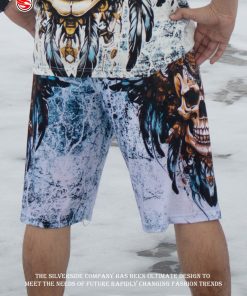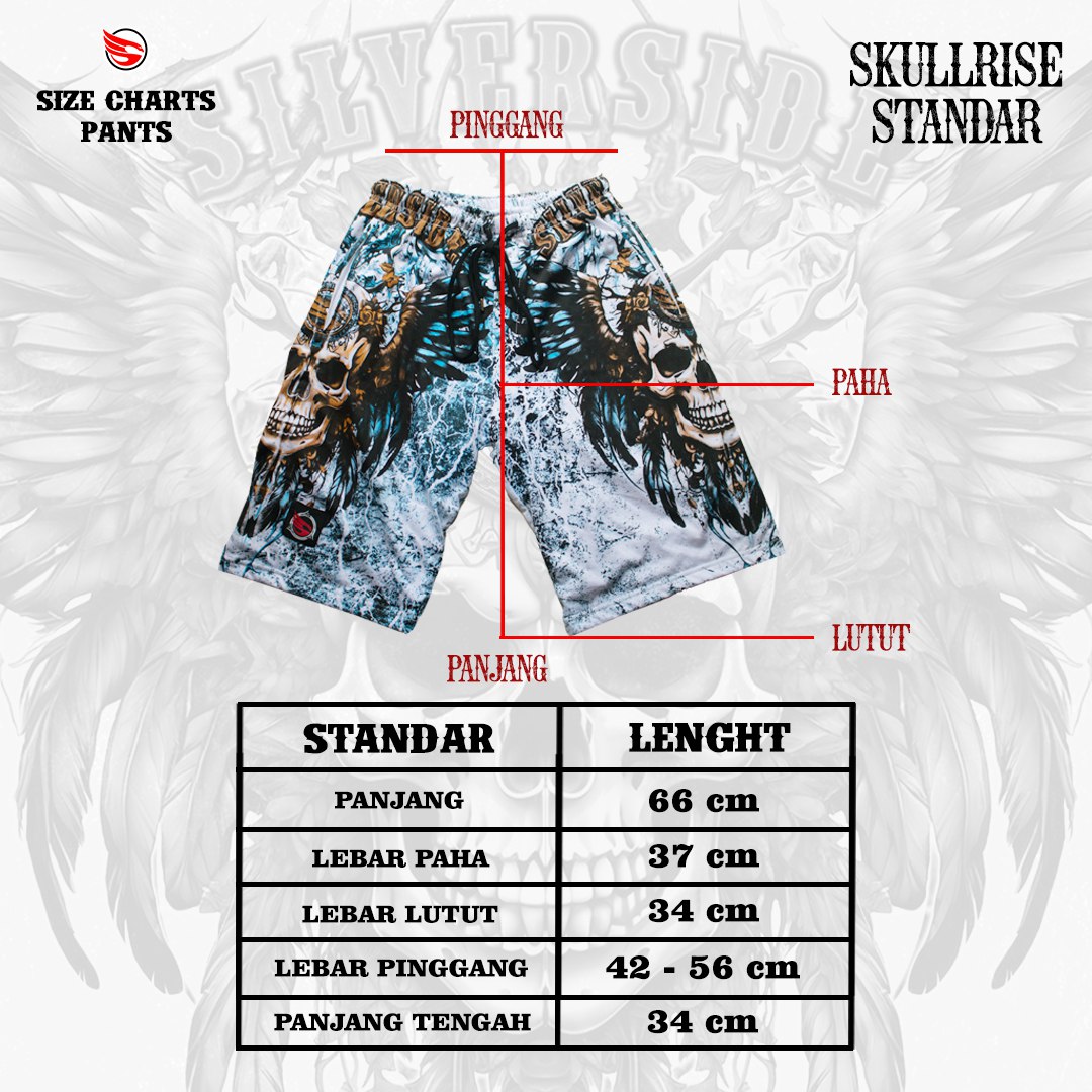 Celana Pendek katun fullprint “Skullrise” dari Silverside hadir dengan desain unik dan edgy, menampilkan warna dasar hitam yang dipadukan dengan ilustrasi mesin motor dan kunci inggris yang bold dan mencuri perhatian.