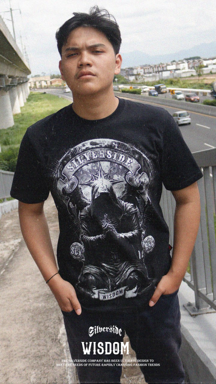 Kaos basic Wisdom warna hitam dari brand Silverside mengusung desain yang bold dan penuh arti. Pada bagian depan, terdapat gambar seorang pria berjubah hitam yang menciptakan kesan misterius dan keren, sementara di bagian belakang, gambar pedang yang tajam dan tegas menambah sentuhan kekuatan visual pada kaos ini. Terbuat dari katun 30s combed, kaos ini sangat nyaman dipakai, memiliki tekstur yang halus, dan daya serap keringat yang baik, menjadikannya pilihan sempurna untuk aktivitas sehari-hari. Kaos basic pria ini hadir dengan kualitas terbaik, ideal bagi Anda yang mencari kaos basic katun dengan desain yang unik dan tampilan stylish. Dapatkan kaos Silverside Wisdom untuk menambahkan koleksi fashion Anda dengan sentuhan elegan dan modern.